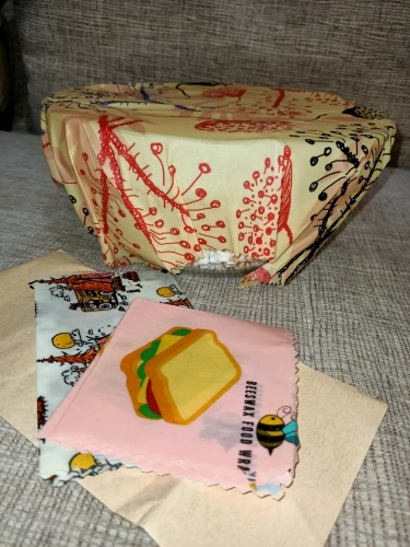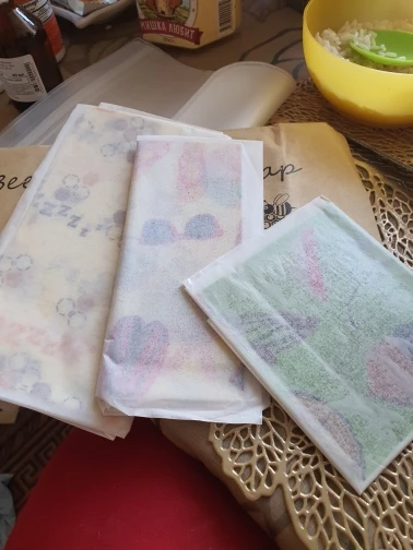 Buenos pañuelos de cera de abeja. Sirven para tapar cuencos, yo los he utilizado en sopa y agua.