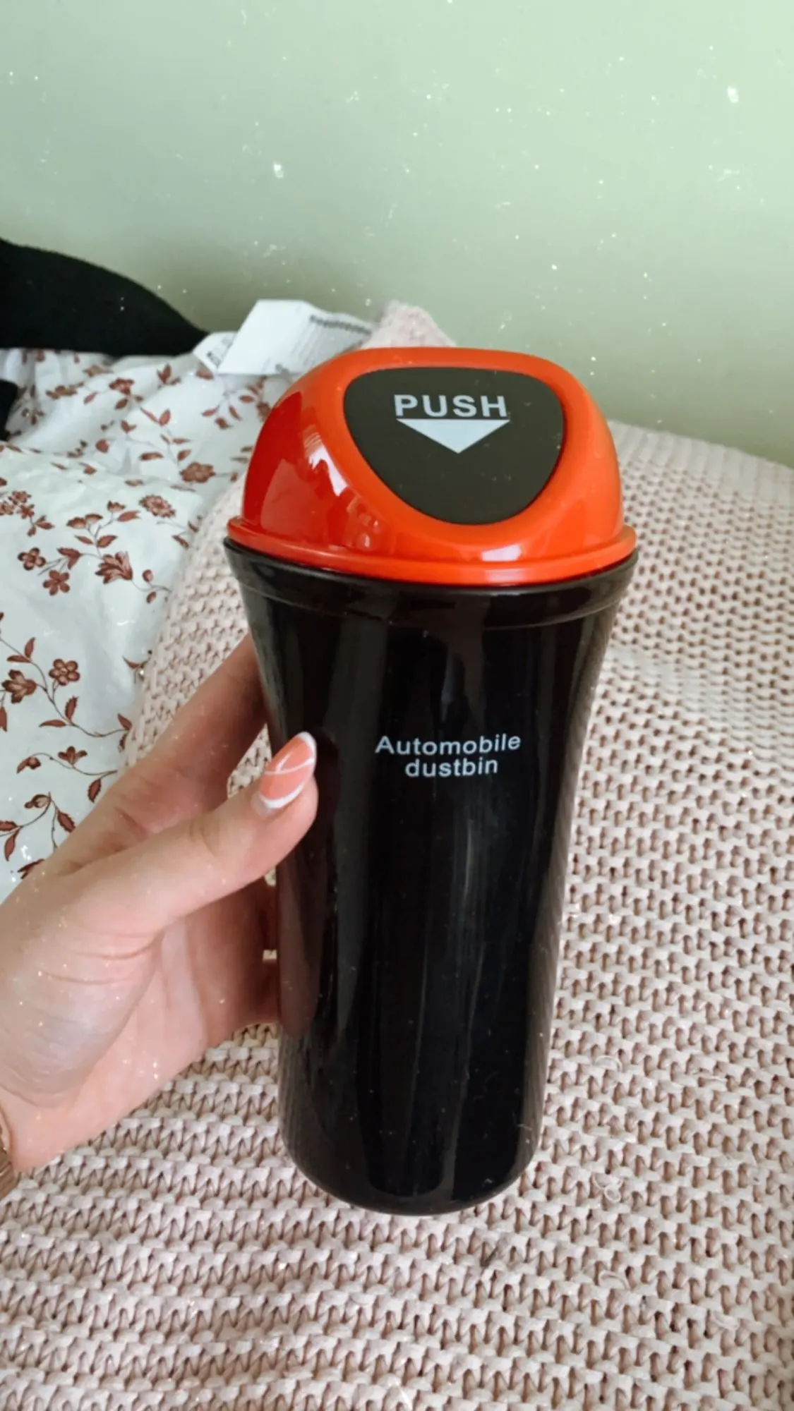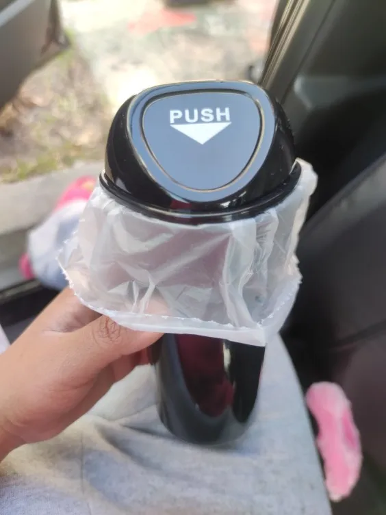 Contenedor pequeño o papelera para almacenar pequeños residuos, en el coche o transporte, evitando la dispersión y ensuciamiento del entorno.